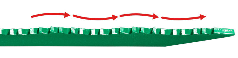 広いピッチの歯と狭いピッチの歯を交互に配置することで、耐久性と切れ味を両立しました。