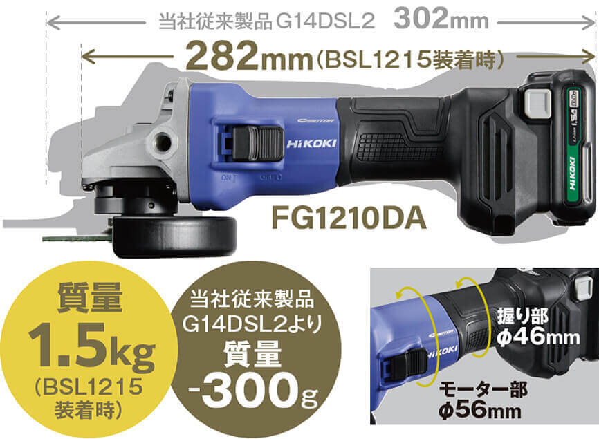 | FG1210DA | (BS) | ¥ 27,600 | 2.0Ah(BSL1220M) | ● | レジノイドフレキシブルトイシ・ テーパ式多羽根ディスク付 |