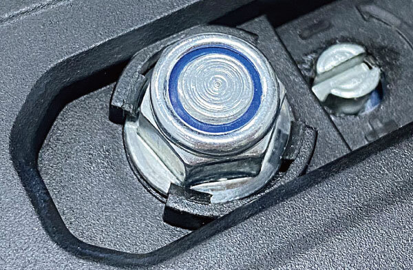 サイドカバーを外す時、落下防止ツメによりナットが脱落しにくくナットの紛失を防ぎます。