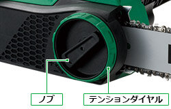 ソーチェンの交換、調整がツールレスで簡単にできます。