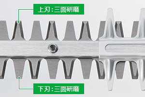 作業姿勢を選ばない操作性の良いハンドル形状で、生垣の上面・側面等の刈込みに最適です。