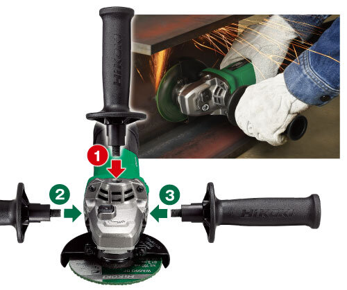 モーターの急激な回転低下を監視することで、瞬時にモーターを停止し反動(キックバック)を軽減します。