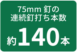 減圧弁を2.26MPaにセットし、空気タンク内圧力が1.7MPaになるまでの連続釘打ち本数を測定。