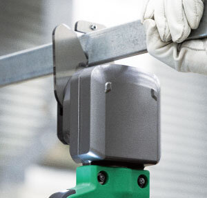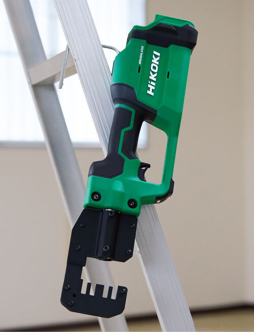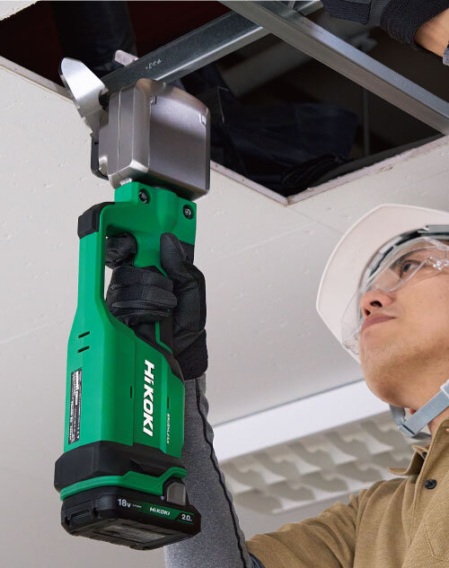 片手操作で部材を押さえながら、安全作業をサポート。操作荷重はスイッチを押すだけなので、 ラクに切断できます。
