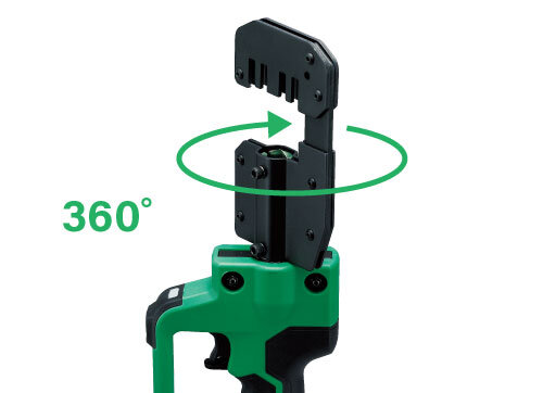 高所で体勢を気にせず作業が行えるよう、刃先が360°回転します。