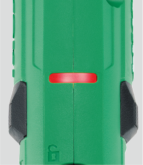 電池残量が少なくなると、赤ランプが点灯してお知らせします。電池切れを未然に防ぐことができます。