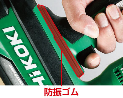 動力部とハンドル部の間に防振ゴムを配置することにより、打込み時の衝撃を緩和する当社独自の防振ハンドル構造(特許)です。