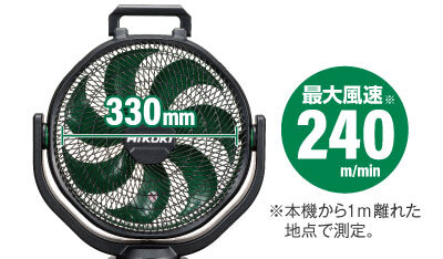 330mmの大形ファンで広い現場にパワフル送風