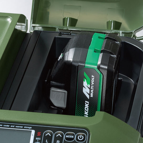 冷温庫をコンセントか車載電源に接続した状態で、蓄電池をセットすると保冷・保温しながら蓄電池を充電することができます。